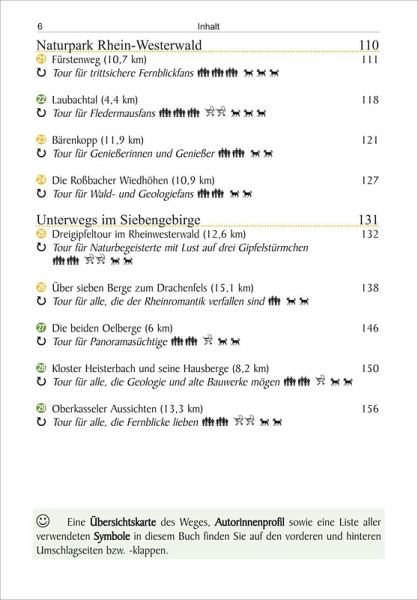 Eingerahmt von Rhein, Sieg, Heller, Dill und Lahn lockt der Westerwald mit faszinierenden Felsen, dichtem Wald, weiten Fernsichten, idyllischen Bachlandschaften und gepflegten Wanderwegen. Zwischen Bonn, Dillenburg, Limburg und Koblenz liegt diese gut erreichbare Wanderregion, deren Wege nie überlaufen sind. Unterwegs trifft man auf den römischen Limes, wehrhafte Burgen, uralte Kirchen und Klöster, sehenswerte Industriehistorie und malerische Fachwerkarchitektur. Die Touren mit unterschiedlichen Längen und Schwierigkeitsgraden führen durch das Siebengebirge und durch alle Teilregionen des Westerwaldes in Hessen, Nordrhein-Westfalen und Rheinland-Pfalz. Kurze barrierefreie Wanderungen, die auch mit Buggy problemlos bewältigt werden können, sind ebenso enthalten wie anspruchsvollere Tageswanderungen. Zu jeder Tour gibt es Tipps für Wanderer mit Kind und Hund und Informationen zu Anreise, Einkehrmöglichkeiten, Markierungen u. v. m. Karten und Höhenprofile ergänzen die genaue Wegbeschreibung, GPS-Daten zu jeder Tour können auf der Verlagswebsite kostenlos heruntergeladen werden.