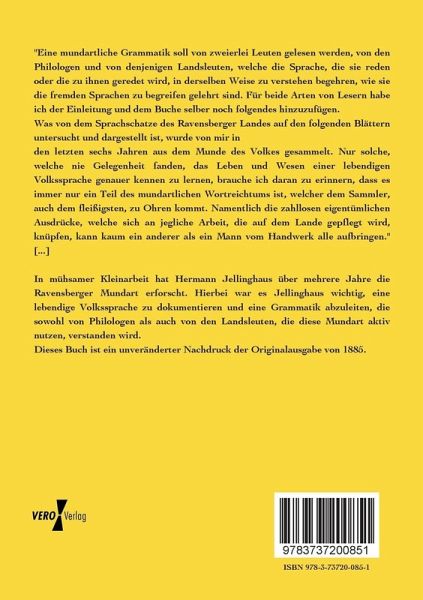In mühsamer Kleinarbeit hat Hermann Jellinghaus über mehrere Jahre die Ravensberger Mundart erforscht. Hierbei war es Jellinghaus wichtig, eine lebendige Volkssprache zu dokumentieren und eine Grammatik abzuleiten, die sowohl von Philologen als auch von den Landsleuten, die diese Mundart aktiv nutzen, verstanden wird.