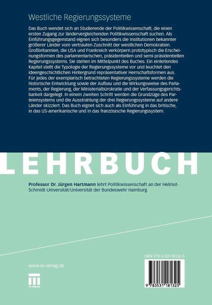 Das Buch wendet sich an Studierende der Politikwissenschaft, die einen ersten Zugang zur ländervergleichenden Politikwissenschaft suchen. Als Einführungsgegenstand eignen sich besonders die Institutionen bekannter größerer Länder vom vertrauten Zuschnitt der westlichen Demokratien. Großbritannien, die USA und Frankreich verkörpern prototypisch die Erscheinungsformen des parlamentarischen, präsidentiellen und semi-präsidentiellen Regierungssystems. Sie stehen im Mittelpunkt des Buches. Ein einleitendes Kapitel stellt die Typologie der Regierungssysteme vor und leuchtet den ideengeschichtlichen Hintergrund repräsentativer Herrschaftsformen aus. Für jedes der exemplarisch betrachteten Regierungssysteme werden die historische Entwicklung sowie der Aufbau und die Wirkungsweise des Parlaments, der Regierung, der Ministerialbürokratie und der Verfassungsgerichtsbarkeit dargelegt. In einem zweiten Schritt werden die Grundzüge des Parteiensystems und die Ausstrahlung der drei Regierungssysteme auf andere Länder skizziert. Das Buch eignet sich auch als Einführung in das britische, in das US-amerikanische und in das französische Regierungssystem.