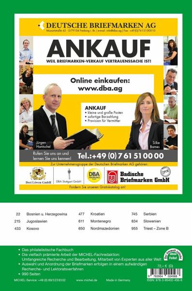 Der sechste Band der MICHEL Europa-Reihe enthält die Briefmarken der beliebten Sammelgebiete Bosnien und Herzegowina, Jugoslawien, Kosovo, Kroatien, Montenegro, Nordmazedonien, Serbien, Slowenien und Triest - Zone B.