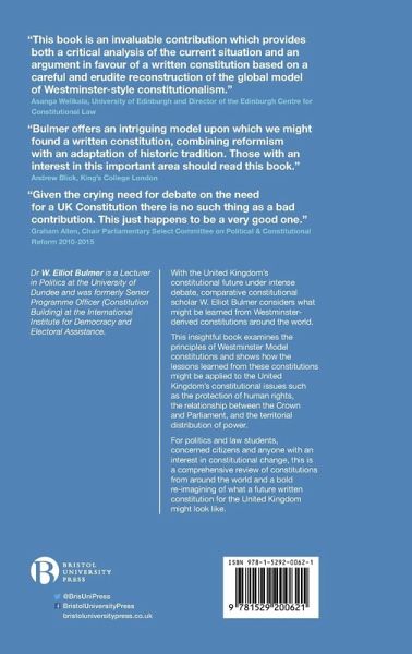 Constitutional scholar Elliot Bulmer considers what Britain might learn from Westminster-derived constitutions around the world. Exploring the principles of Westminster Model constitutions and their impact on democracy, human rights and good government, this book builds to a bold re-imagining of the United Kingdom's future written framework.