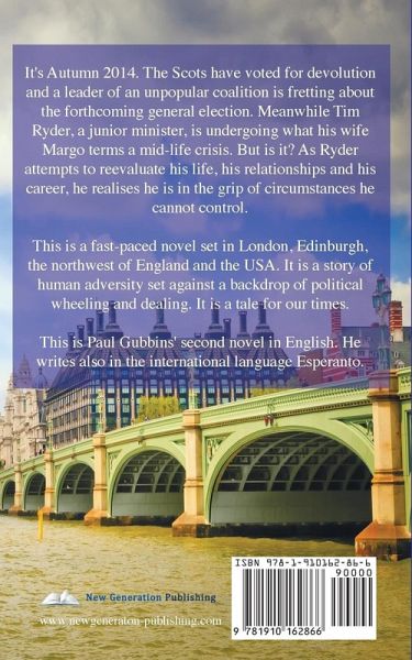 It's Autumn 2014. The Scots have voted for devolution and a leader of an unpopular coalition is fretting about the forthcoming general election. Meanwhile Tim Ryder, a junior minister, is undergoing what his wife Margo terms a mid-life crisis. But is it? As Ryder attempts to reevaluate his life, his relationships and his career, he realises he is in the grip of circumstances he cannot control. This is a fast-paced novel set in London, Edinburgh, the northwest of England and the USA. It is a story of human adversity set against a backdrop of political wheeling and dealing. It is a tale for our times. This is Paul Gubbins' second novel in English. He writes also in the international language Esperanto.