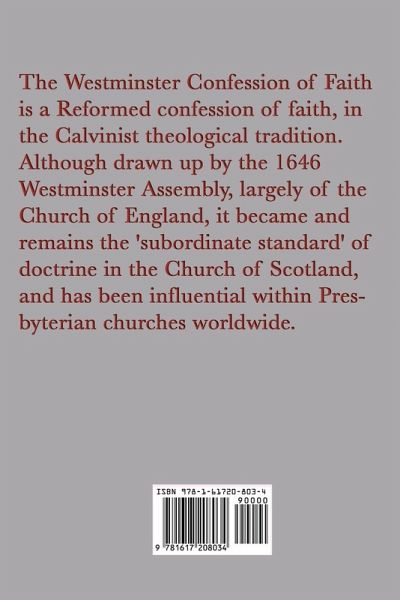 The Westminster Confession of Faith is a Reformed confession of faith, in the Calvinist theological tradition. Although drawn up by the 1646 Westminster Assembly, largely of the Church of England, it became and remains the 'subordinate standard' of doctrine in the Church of Scotland, and has been influential within Presbyterian churches worldwide.