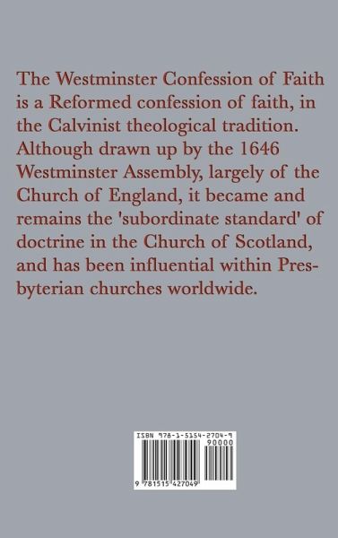 The Westminster Confession of Faith is a Reformed confession of faith, in the Calvinist theological tradition. Although drawn up by the 1646 Westminster Assembly, largely of the Church of England, it became and remains the 'subordinate standard' of doctrine in the Church of Scotland, and has been influential within Presbyterian churches worldwide.