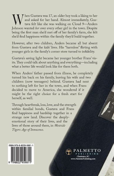 Follow the adult life of Gustava, a bright-eyed Swedish farm girl who marries early and struggles to carve a purpose-filled, joyous life for herself in the late 1800s. When Gustava was 17, an older boy took a liking to her and asked for her hand. Almost immediately, Gustava felt like she was walking on Cloud 9-Anders Johnson wanted her over every other girl in the town. Despite being the first man she'd met off of her family's farm, she felt she'd find happiness within the family they'd build together. However, after two children, Anders became all but absent from Gustava and the kids' lives. His "harmless" flirting with younger girls in the family's corner store turned to infidelity. Gustava's saving light became her younger brother Frans' visits. They could talk about anything and everything-including what a better life would look like for them both. When Anders' father passed from illness, he completely turned his back on his family, leaving his wife and two children (now teenagers) behind. Gustava had next to nothing left for her in the town, and when Frans decided to move to America, she wondered if it might be the right choice for a fresh start for herself, as well. Through heartbreak, loss, love, and the strength within familial bonds, Gustava and Frans find happiness and hardship together in a strange new land. Discover the deeply-emotional story of their lives, and the lives of those around them, in Westside Tigers: Age of Innocence.