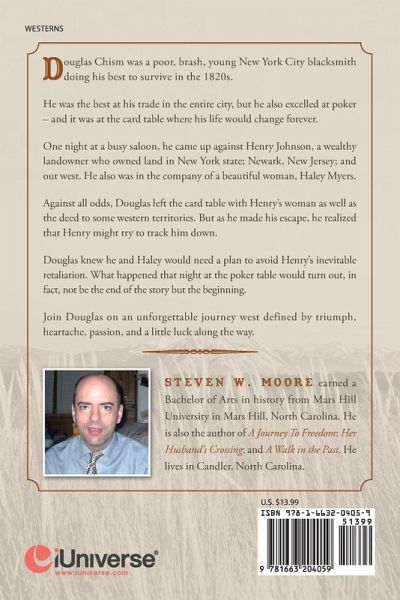Based in the 19th Century, Douglas Chism was a poor, brash, young New York City Blacksmith. He was very talented in his trade, the best in the entire city, but was also good at something else, poker. One night, and over a poker game, in a busy New York City saloon, would change Douglas' destiny for the rest of his life. As a result of that poker game, he would embark on a journey that would take him and his family out west. It is an unforgettable journey that would see triumph, heartache, and a little luck. Come along with Douglas on an adventure to the west in some danger, intrigue, and some unfortunate moments.