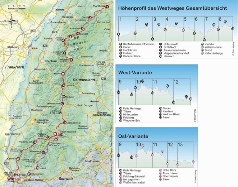 Der Westweg gehört zu den ältesten Fernwanderwegen Deutschlands und ist auch heute noch einer der beliebtesten in Europa. Er führt auf rund 285 km von Nord nach Süd (oder andersherum) durch den mystischen Schwarzwald. Von Pforzheim am Nordrand folgt der Westweg weitgehend dem Hauptkamm des größten deutschen Mittelgebirges und überschreitet einige seiner höchsten Gipfel: Hornisgrinde, Schliffkopf, Brend, Feldberg, Herzogenhorn, Belchen und Blauen. Dabei bietet er fantastische Ausblicke, die im südlichen Teil bis zu den schneebedeckten Gipfeln der Alpen reichen. In Titisee gabelt sich der Weg in eine westliche und eine östliche Variante, die beide in Basel enden.Die Wanderung auf dem Westweg besticht vor allem durch ihre Flexibilität bei der Etappeneinteilung und den Übernachtungsmöglichkeiten - so ist er sowohl für Wanderer, die es gemütlich mögen, als auch für Abenteuersuchende geeignet.Die nötigen Informationen, Inspirationen und Tipps für die persönliche Planung liefert dieser Wanderführer. Enthalten sind Karten, Höhenprofile, eine Übersichtskarte und GPS-Tracks zum Download.