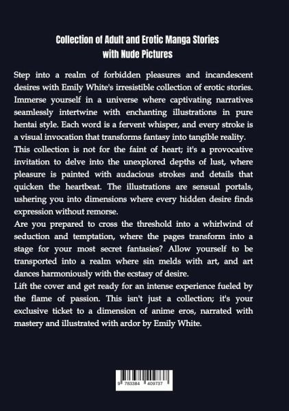 Indulge in an Unforgettable Journey of Passion and Temptation with Emily White's Erotic Masterpiece!Step into a captivating world where seduction knows no bounds in Emily White's latest collection of scintillating erotic stories, enriched with enchanting hentai illustrations. Immerse yourself in a universe where each word is a whispered promise, and every brushstroke is a visual enchantment that brings fantasies to life in pure hentai style.This collection is a daring invitation to explore the uncharted depths of desire, where pleasure unfolds with audacious strokes and details that will quicken your heartbeat. The carefully crafted hentai illustrations serve as sensuous portals, transporting you into dimensions where every hidden fantasy finds unabashed expression.What to Expect:- A Fusion of Literary Mastery and Sensual Artistry- Explicit and Alluring Hentai Illustrations- Stories That Explore the Boundaries of Lust and Fantasy- A Whirlwind of Seduction and TemptationThis isn'tjust a collection; it's your exclusive ticket to a dimension of hentai eros, meticulously narrated and ardently illustrated by Emily White. Lift the cover and prepare for an intense experience fueled by the flame of passion.Caution: This Collection is Not for the Faint of Heart. Are You Ready to Cross the Threshold?