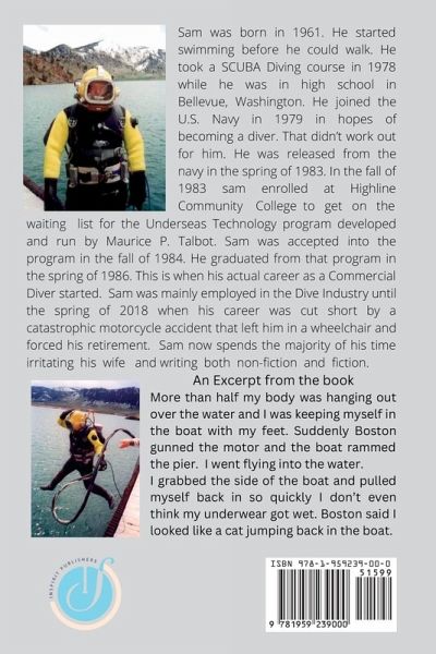 Wet Pay is my story of my career in Commercial Diving. It starts from when I entered a Commercial Dive School in 1983 and follows the first half of my career into 2001. These are funny, exciting, sometimes horrifying tales of incidents that took place while I was working as a commercial diver around the Pacific Northwest and the Western United States. The stories are ALL true as to the best of my recollection.