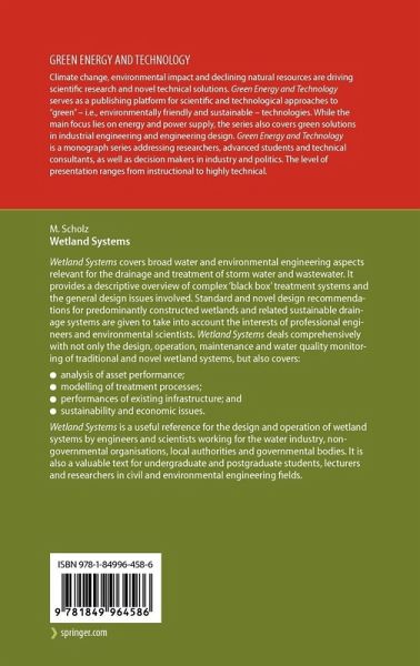1. Introduction to Wetland Systems.- 2. Wetland Case Studies.- 3. Carbon Storage and Fluxes Within Wetland Systems.- 4. Wetlands and Sustainable Drainage.- 5. Modeling of Complex Wetland Systems.