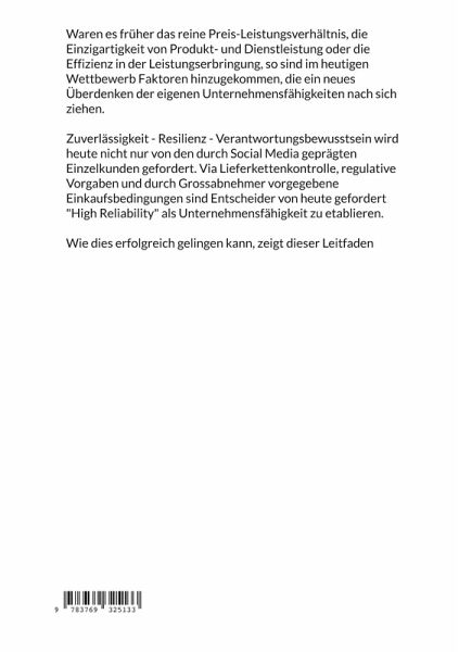 Waren es früher das reine Preis-Leistungsverhältnis, die Einzigartigkeit von Produkt- und Dienstleistung oder die Effizienz in der Leistungserbringung, so sind im heutigen Wettbewerb Faktoren hinzugekommen, die ein neues Überdenken der eigenen Unternehmensfähigkeiten nach sich ziehen. Zuverlässigkeit - Resilienz - Verantwortungsbewusstsein wird heute nicht nur von den durch Social Media geprägten Einzelkunden gefordert. Via Lieferkettenkontrolle, regulative Vorgaben und durch Grossabnehmer vorgegebene Einkaufsbedingungen sind Entscheider von heute gefordert "High Reliability" als Unternehmensfähigkeit zu etablieren. Wie dies erfolgreich gelingen kann, zeigt dieser Leitfaden