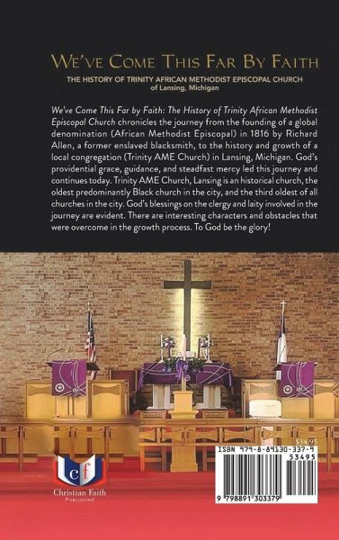 We've Come This Far by Faith: The History of Trinity African Methodist Episcopal Church chronicles the journey from the founding of a global denomination (African Methodist Episcopal) in 1816 by Richard Allen, a former enslaved blacksmith, to the history and growth of a local congregation (Trinity AME Church) in Lansing, Michigan. God's providential grace, guidance, and steadfast mercy led this journey and continues today. Trinity AME Church, Lansing is an historical church, the oldest predominantly Black church in the city, and the third oldest of all churches in the city. God's blessings on the clergy and laity involved in the journey are evident. There are interesting characters and obstacles that were overcome in the growth process. To God be the glory!