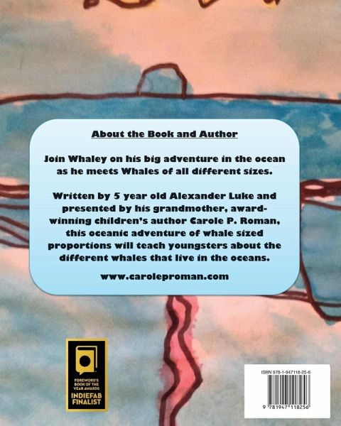 Join Whaley on his big adventure in the ocean as he meets Whales of all different sizes. Written and illustrated by 5-year-old Alexander Luke, and presented by his grandmother, award-winning children's author Carole P. Roman, this oceanic adventure of whale-sized proportions will teach youngsters about the different whales that live in the oceans.