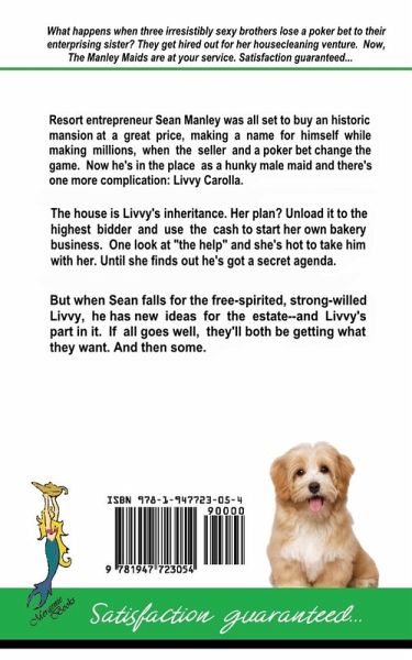 What happens when three irresistibly sexy brothers lose a poker bet to their enterprising sister? They get hired out for her housecleaning venture. Now, the Manley Maids are at your service. Satisfaction guaranteed. It's what a woman wants... Resort entrepreneur Sean Manley was all set to buy an historic mansion at a great price, making a name for himself while making millions, when the seller and the poker bet change the game. Now he's in the place as a hunky male maid and there's one more complication: Livvy Carolla. The house is her inheritance. Livvy's plan? Unload it to the highest bidder and use the cash to start her own bakery business. One look at "the help" and she's hot to take him with her. Until she finds out he's got a secret agenda. But when Sean falls for the free-spirited, strong-willed Livvy, he has new ideas for the estate-and Livvy's part in it. If all goes well, they'll both be getting what they want. And then some.
