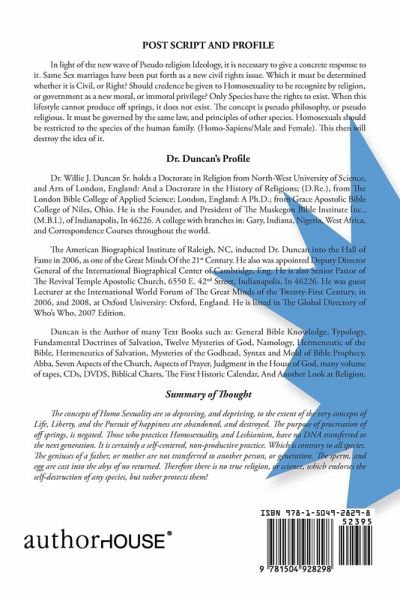 In light of the new wave of Pseudo religion Ideology, it is necessary to give a concrete response to it. Same Sex marriages have been put forth as a new civil rights issue. Which it must be determined whether it is Civil, or Right? Should credence be given to Homosexuality to be recognize by religion, or government as a new moral, or immoral privilege? Only Species have the rights to exist. When this lifestyle cannot produce off springs, it does not exist. The concept is pseudo philosophy, or pseudo religious. It must be governed by the same law, and principles of other species. Homosexuals should be restricted to the species of the human family. (Homo-Sapiens/Male and Female). This then will destroy the idea of it.