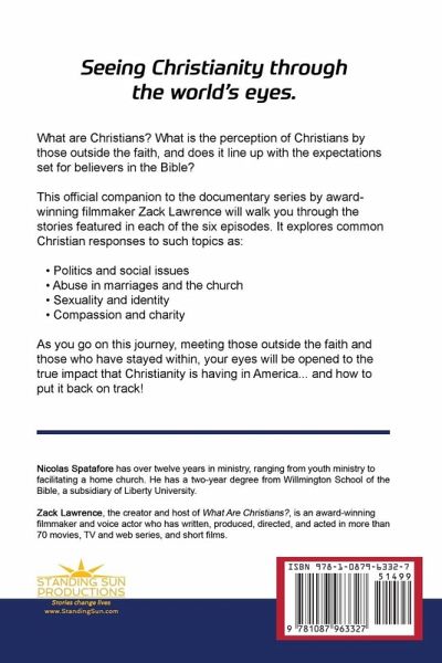 This official companion to the documentary series by award-winning filmmaker Zack Lawrence will walk you through the stories featured in each of the six episodes. It explores common Christian responses to such topics as:Politics and social issues Abuse in marriages and the church Sexuality and identity Compassion and charity As you go on this journey, meeting those outside the faith and those who have stayed within, your eyes will be opened to the true impact that Christianity is having in America... and how to put it back on track! This book includes:Six chapters with hard-hitting questions for both individuals and groups designed to stretch your understanding of what it means to be a Christian, and how to become a more effective witness of the Gospel QR codes in each chapter to stream the episode from your device "How to Use This Discussion Guide" suggestions for small groups