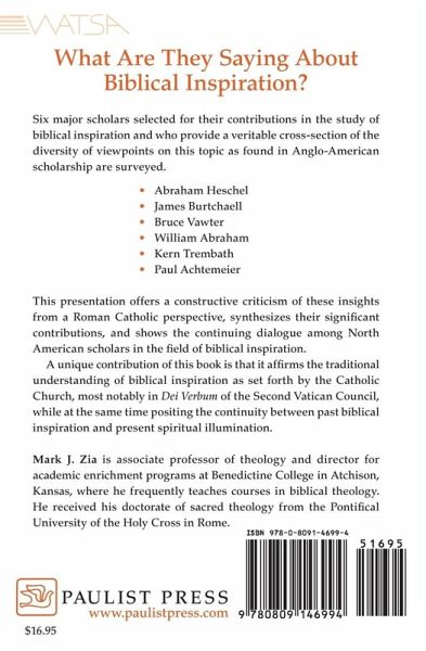 This book surveys the study of biblical inspiration by focusing on the contributions and insights of six major scholars: Abraham Heschel, James Burtchaell, Bruce Vawter, William Abraham, Kern Trembath, and Paul Achtemeier. These scholars were chosen for their contributions to the theme of biblical inspiration, and as a whole, provide a veritable cross-section of the diversity of insights in this topic as found in Anglo-American scholarship. This presentation offers a constructive criticism of these insights from a Roman Catholic perspective, synthesizes the positive contributions of these scholars, and shows the significant contribution to the continuing dialogue among North American scholars in the field of biblical inspiration. A unique contribution of this work is that it affirms the traditional understanding of biblical inspiration as set forth by the Catholic Church, most notably in Dei Verbum of Vatican II, while at the same time also affirming the continuity between past biblical inspiration and present spiritual illumination. +