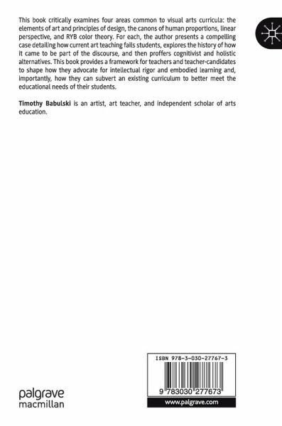This book critically examines four areas common to visual arts curricula: the elements of art and principles of design, the canons of human proportions, linear perspective, and RYB color theory. For each, the author presents a compelling case detailing how current art teaching fails students, explores the history of how it came to be part of the discourse, and then proffers cognitivist and holistic alternatives. This book provides a framework for teachers and teacher-candidates to shape how they advocate for intellectual rigor and embodied learning and, importantly, how they can subvert an existing curriculum to better meet the educational needs of their students.