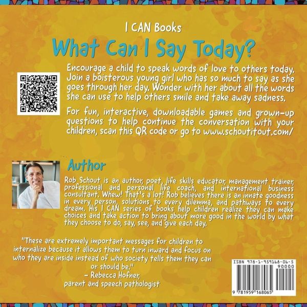 Encourage a child to speak words of love to others today. Join a boisterous young girl who has so much to say as she goes through her day. Wonder with her about all the words she can use to help others smile and take away sadness. Discover the entire I CAN series and download interactive games and grown-up questions to help continue the conversation with your children - www.schoutitout.com