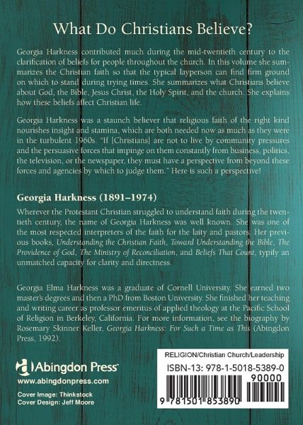 Georgia Harkness contributed much during the mid-twentieth century to the clarification of beliefs for people throughout the church. In this volume she summarizes the Christian faith so that the typical individual can find firm ground on which to stand during trying times. She summarizes what Christians believe about God, the Bible, Jesus Christ, the Holy Spirit, and the Church. She explains how these beliefs affect Christian life. Georgia Harkness was a staunch believer that religious faith of the right kind nourishes insight and stamina, which are both needed as much now as they were in the turbulent 1960s. "If [Christians] are not to live by community pressures and the persuasive forces that impinge on them constantly from business, politics, the television or the newspaper, they must have a perspective from beyond these forces and agencies by which to judge them." Here is such a perspective! Georgia Harkness (1891-1971) Wherever the Protestant Christian struggled to understand faith during the 20th century, the name of Georgia Harkness was well known. She was one of the most respected interpreters of the faith for the laity and for pastors. Her previous books, Understanding the Christian Faith, Toward Understanding the Bible, The Providence of God, The Ministry of Reconciliation, and Beliefs that Count typify an unmatched capacity for clarity and directness. Georgia Elma Harkness was an ordained Methodist minister and a graduate of Cornell University. She earned two masters' degrees and then the PhD from Boston University. She finished her teaching and writing career as professor emeritus of applied theology at the Pacific School of Religion in Berkeley, California. For more information, see the biography by Rosemary Skinner Keller, Georgia Harkness: For Such a Time As This (Abingdon Press, 1992).