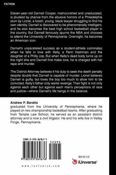 Eleven-year-old Darnell Cooper, malnourished and uneducated, is plucked by chance from the abusive horrors of a Philadelphia slum by Lionel, a brash, young, black lawyer struggling to find his own identity. Darnell is discovered to be phenomenally intelligent, and he also becomes the best high school basketball player in the country. But Darnell famously spurns the NBA and chooses to attend the University of Pennsylvania. Overnight, he becomes an American icon. Darnell's unparalleled success as a student-athlete culminates when he falls in love with Kelly, a Penn freshman and the daughter of a Philly cop. But when Kelly's dead body turns up on the night she and Darnell first make love, he is charged with her rape and murder. The District Attorney believes it his duty to seek the death penalty despite doubts that Darnell is capable of murder. Lionel believes Darnell is guilty, but loves the boy too much to allow him to be convicted. Kelly's father only wants revenge. Their fight is not only against each other but against each man's perceptions of race and justice-where Darnell's life hangs in the balance.