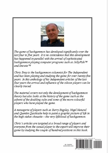 The game of backgammon has developed significantly over the last four to five years. It is no coincidence that this development has happened in parallel with the arrival of sophisticated computers. Chris Bray is the backgammon columnist for "The Independent" newspaper in the UK. In this anthology of his Independent articles of the last four years the arrival and influence of the silicon players can be clearly traced. The material covers not only the development of backgammon theory but also looks at the history of the game such as the advent of the doubling cube and some of the more colourful players who have played the game. A menagerie of players such as Barry Bigplay, Nigel Natural and Quentin Quickcube help to paint a graphic picture of life in the high stakes chouette - the very lifeblood of backgammon. Chris's articles are targeted at a broad range of players and everyone from the casual player to the expert will improve their game by studying the couple of hundred positions in this book.