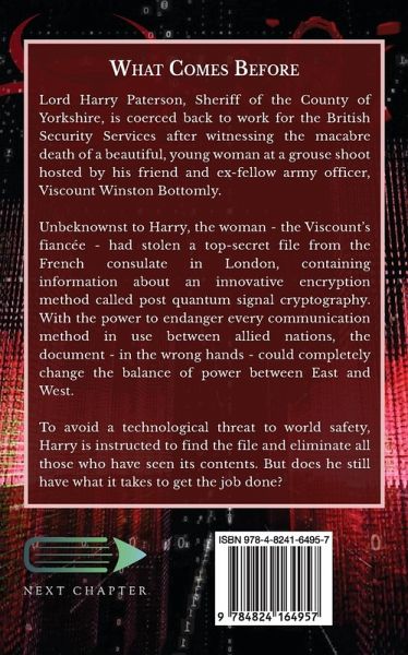 Lord Harry Paterson, Sheriff of the County of Yorkshire, is coerced back to work for the British Security Services after witnessing the macabre death of a beautiful, young woman at a grouse shoot hosted by his friend and ex-fellow army officer, Viscount Winston Bottomly. Unbeknownst to Harry, the woman - the Viscount's fiancée - had stolen a top-secret file from the French consulate in London, containing information about an innovative encryption method called post quantum signal cryptography. With the power to endanger every communication method in use between allied nations, the document - in the wrong hands - could completely change the balance of power between East and West. To avoid a technological threat to world safety, Harry is instructed to find the file and eliminate all those who have seen its contents. But does he still have what it takes to get the job done?