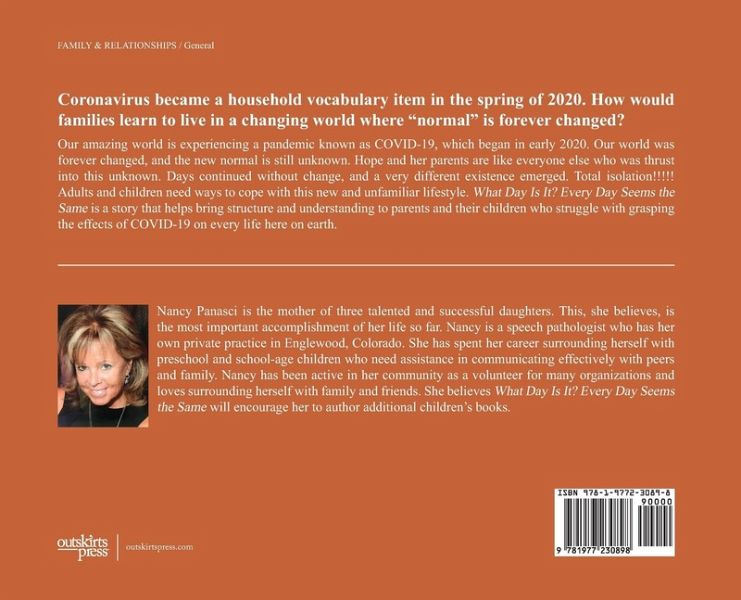Coronavirus became a household word in 2020. How did families learn to live in a changing world where "normal" is forever changed? What Day Is It? Every Day Seems the Same is a story that helps bring structure and understanding to parents and their children who struggle with grasping the effects of COVID-19. Nancy Panasci's book, perfect for early readers ages five to nine, as well as their parents, teachers, grandparents, and day care providers, won a 2020 Story Monsters LLC award.
