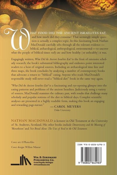 What food did the ancient Israelites eat, and how much of it did they consume? That's a seemingly simple question, but it's actually a complex topic. In this fascinating book Nathan MacDonald carefully sifts through all the relevant evidence -- biblical, archaeological, anthropological, environmental -- to uncover what the people of biblical times really ate and how healthy (or unhealthy) it was. Engagingly written for general readers, What Did the Ancient Israelites Eat? is nonetheless the fruit of extensive scholarly research; the book's substantial bibliography and endnotes point interested readers to a host of original sources. Including an archaeological timeline and three detailed maps, the book concludes by analyzing a number of contemporary books that advocate a return to "biblical" eating. Anyone who reads MacDonald's responsible study will never read a "biblical diet" book in the same way again.