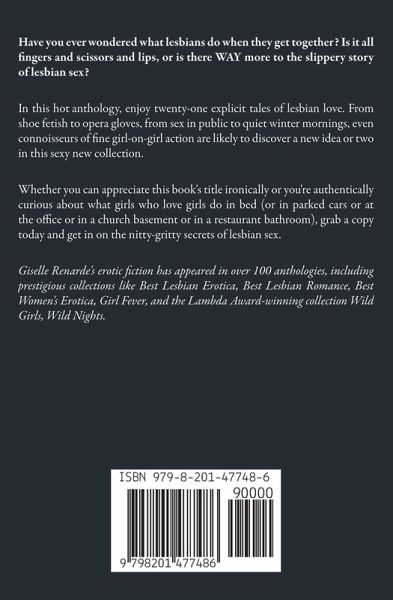 Have you ever wondered what lesbians do when they get together? Is it all fingers and scissors and lips, or is there WAY more to the slippery story of lesbian sex? In this hot anthology, enjoy twenty-one explicit tales of lesbian love. From shoe fetish to opera gloves, from sex in public to quiet winter mornings, even connoisseurs of fine girl-on-girl action are likely to discover a new idea or two in this sexy new collection. Whether you can appreciate this book's title ironically or you're authentically curious about what girls who love girls do in bed (or in parked cars or at the office or in a church basement or in a restaurant bathroom), grab a copy today and get in on the nitty-gritty secrets of lesbian sex. Giselle Renarde's erotic fiction has appeared in over 100 anthologies, including prestigious collections like Best Lesbian Erotica, Best Lesbian Romance, Best Women's Erotica, Girl Fever, and the Lambda Award-winning collection Wild Girls, Wild Nights.
