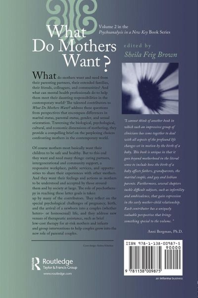What do mothers want and need from their parenting partners, their extended families, their friends, colleagues, and communities? And what can mental health professionals do to help them meet their daunting responsibilities in the contemporary world? The talented contributors to What Do Mothers Want? address these questions from perspectives that encompass differences in marital status, parental status, gender, and sexual orientation. Traversing the biological, psychological, cultural, and economic dimensions of mothering, they provide a compelling brief on the perplexing choices confronting mothers in the contemporary world. Of course, mothers most basically want their children to be safe and healthy. But to this end they want and need many things: caring partners, intergenerational and community support, a responsive workplace, public services, and opportunities to share their experiences with other mothers. And they want their feelings and actions as mothers to be understood and accepted by those around them and by society at large. The role of psychotherapy in reaching these latter goals is taken up by many of the contributors. They reflect on the special psychological challenges of pregnancy, birth, and the arrival of a newborn into a couple's (whether hetero- or homosexual) life, and they address new venues of therapeutic assistance, such as brief low-cost therapy for at-risk mothers and infants and group interventions to help couples grow into the new role of parental couples.