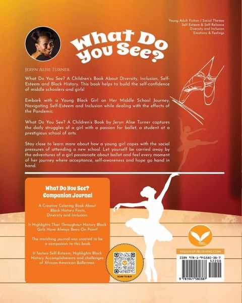 What Do You See? A Children's Book About Diversity, Inclusion and Black History - Self-Esteem Book for Children About Self-Esteem and Self Confidence, and Inclusiveness Embark with a Young Black Girl on Her Middle School Journey, Navigating Self-Esteem and Inclusion while dealing with the effects of the Pandemic. What Do You See? book is a children's book by Jeryn Alise Turner that captures the daily struggles of a black girl with a passion for ballet, a student at a prestigious school of arts. Stay close to learn more about how a young black girl manages social and emotional struggles of…mehr