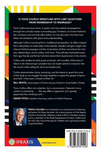 16th Annual Outreach Magazine Resource of the Year Is your church wrestling with LGBT questions from membership to marriage? Travis Collins has been there. A pastor who has walked congregations through the complex issues surrounding gay Christians, he knows firsthand the confusion and hurt that often follow. He has also seen churches have these conversations with grace and understanding. In this practical resource, readers will gain insight into relevant biblical passages and, while the author is working from a traditional perspective, he offers insights from interpreters on both sides of the debate. They will consider the implications of their convictions for ministry practice, relationships, church policy, and more. They will hear testimonies from gay friends and family members about their experiences in the church. Collins calls readers to both grace and truth, with humility. What Does It Mean to Be Welcoming? considers how we might welcome everyone into the church while calling for all to be transformed.