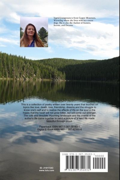 This is a collection of poetry written over 20 years that touches on topics like love, death, loss, friends, dreams, and the struggle to know oneself and realize the effects of life on the soul in the hopes that the heart will not grow bitter, but come out stronger. The cold and desolate Wyoming landscape and the events of the authors life come together to paint a picture of a hard life made beautiful through prose.
