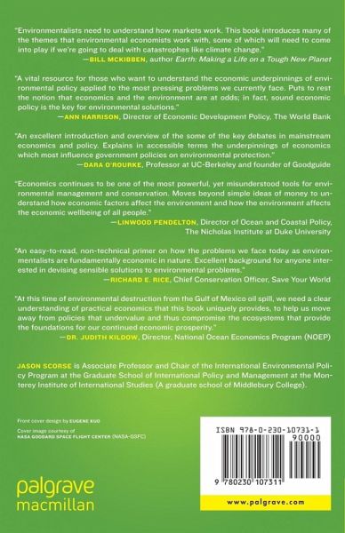 "Economics continues to be one of the most powerful, yet misunderstood tools for environmental management and conservation. Jason Scorse's book will help anyone who cares about the environment move beyond simple ideas of money to understand how economic factors affect the environment and how the environment affects the economic wellbeing of all people." - Linwood Pendelton, Director of Ocean and Coastal Policy, The Nicholas Institute at Duke University