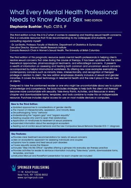 "What Every Mental Health Professional Needs to Know About Sex is a straightforward, inclusive, plain language textbook designed to take the provider who knows very little or who might be uncomfortable about sex to a place of knowledge and competence. To accomplish this, Part I: The Courage to Treat Sexual Problems begins in Chapter 1 with a rationale regarding the reasons why all mental health professionals need to be able to address clients' sexual concerns, especially the fact that our current social climate has raised clients' expectations about pleasure. In Chapter 2, the reader will find a model of growth in becoming more comfortable with sexuality-both his or her own and the client's. Psychosexual development and the physiology of sex are covered in Chapter 3, while Chapter 4 covers the recent history of the field of sexology and definitions of sexual health generated by various experts and organizations"--