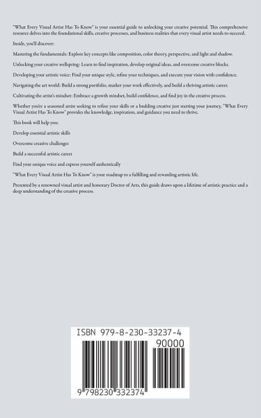 "What Every Visual Artist Has To Know" is your essential guide to unlocking your creative potential. This comprehensive resource delves into the foundational skills, creative processes, and business realities that every visual artist needs to succeed. Inside, you'll discover: Mastering the fundamentals: Explore key concepts like composition, color theory, perspective, and light and shadow. Unlocking your creative wellspring: Learn to find inspiration, develop original ideas, and overcome creative blocks. Developing your artistic voice: Find your unique style, refine your techniques, and execute your vision with confidence. Navigating the art world: Build a strong portfolio, market your work effectively, and build a thriving artistic career. Cultivating the artist's mindset: Embrace a growth mindset, build confidence, and find joy in the creative process. Whether you're a seasoned artist seeking to refine your skills or a budding creative just starting your journey, "What Every Visual Artist Has To Know" provides the knowledge, inspiration, and guidance you need to thrive. This book will help you: Develop essential artistic skills Overcome creative challenges Build a successful artistic career Find your unique voice and express yourself authentically "What Every Visual Artist Has To Know" is your roadmap to a fulfilling and rewarding artistic life. Presented by a renowned visual artist and honorary Doctor of Arts, this guide draws upon a lifetime of artistic practice and a deep understanding of the creative process.