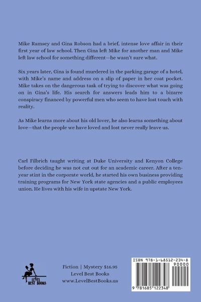 Mike Ramsey and Gina Robson had a brief, intense love affair in their first year of law school. Then Gina left Mike for another man and Mike left law school for something different-he wasn't sure what. Six years later, Gina is found murdered in the parking garage of a hotel, with Mike's name and address on a slip of paper in her coat pocket. Mike takes on the dangerous task of trying to discover what was going on in Gina's life. His search for answers leads him to a bizarre conspiracy financed by powerful men who seem to have lost touch with reality. As Mike learns more about his old lover, he also learns something about love-that the people we have loved and lost never really leave us.