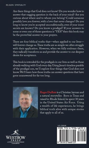 Are there things that God does not know? Do you wonder how to answer that nagging question in the back of your mind? Are you curious about where and to whom you belong? Could someone possibly love you forever, with a love that never changes? Do you long to know you're accepted unconditionally, even if your inner secrets are known? Do you know a prodigal? If your answers to some or even one of those questions is "YES!" then this book may be the proverbial answer to your prayers. There are four biblical truths that-when applied to our lives-will forever change us. These truths are so simple we often struggle with their application. However, when we fully embrace them, they radically transform us and provide the answer to our deepest desire for acceptance. This book is intended for the prodigals in our lives as well as those already walking with God every day. Using Jesus's timeless parable of the prodigal son, we'll explore four things that God does not know. We'll learn how those truths can answer questions that have gone unanswered for far too long.