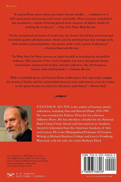What Goes On displays the evolving style and sensibility of a major award-winning poet, and a traceable growth that has blossomed into a provocative confrontation with questions of consciousness and existence. Stephen Dunn's poems probe life's big questions without ever losing sight of the significance of the mundane.