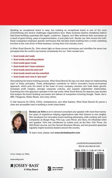 It's tempting to believe that brands like Apple, Nike, and Zappos achieved their iconic statuses because of serendipity, an unattainable magic formula, or even the genius of a single visionary leader. However, these companies all adopted specific approaches and principles that transformed their ordinary brands into industry leaders. In other words, great brands can be built--and Denise Lee Yohn knows exactly how to do it. Delivering a fresh perspective, Yohn's What Great Brands Do teaches an innovative brand-as-business strategy that enhances brand identity while boosting profit margins, improving company culture, and creating stronger stakeholder relationships. Drawing from twenty-five years of consulting work with such top brands as Frito-Lay, Sony, Nautica, and Burger King, Yohn explains key principles of her brand-as-business strategy.