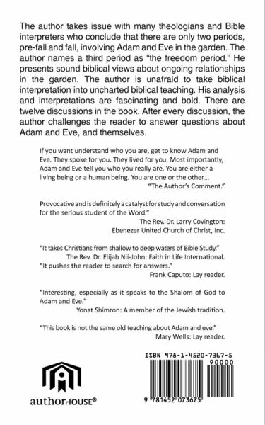 If you want to understand who you are, get to know Adam and Eve. They spoke for you. They lived for you. Most importantly, Adam and Eve tell you who you really are. You are either a living being or a fallen human being. You are one or the other. This perception is made clear from the author's discussion on the lessons from Adam and Eve. Eve was seeking knowledge while Adam was seeking selfish ambitions. In the pre-fall, Adam and Eve had no sin. But each one turned to their own desires to find pleasure and a righteousness of their own in the garden, when God them free will and the right of choice. During the freedom period in the garden, Adam and Eve sinned against God. After their fall, Adam and Eve attempted to inaugurate a new religion, distinct from the religion they had before the fall.