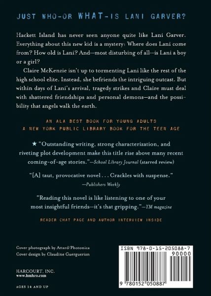 The close-knit residents of Hackett Island have never seen anyone quite like Lani Garver. Everything about this new kid is a mystery: Where does Lani come from? How old is Lani? And most disturbing of all, is Lani a boy or a girl? Claire McKenzie isn't up to tormenting Lani with the rest of the high school elite. Instead, she befriends the intriguing outcast. But within days of Lani's arrival, tragedy strikes and Claire must deal with shattered friendships and personal demons--and the possibility that angels may exist on earth.