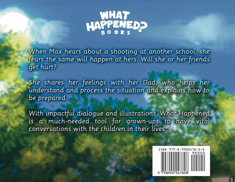 When Max hears about a shooting at another school, she fears the same will happen at hers. Will she or her friends get hurt? She shares her feelings with her Dad, who helps her understand and process the situation and explains how to be prepared. With impactful dialogue and illustrations, What Happened is a much-needed tool for grown-ups to have vital conversations with their children.