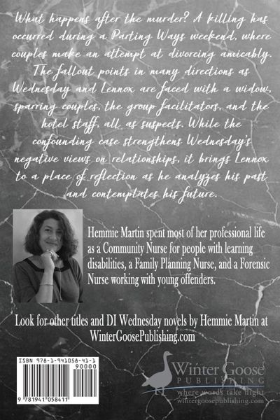 What happens after the murder? A killing has occurred during a Parting Ways weekend, where couples make an attempt at divorcing amicably. The fallout points in many directions as Wednesday and Lennox are faced with a widow, sparring couples, the group facilitators, and the hotel staff, all as suspects. While the confounding case strengthens Wednesday's negative views on relationships, it brings Lennox to a place of reflection as he analyzes his past and contemplates his future.