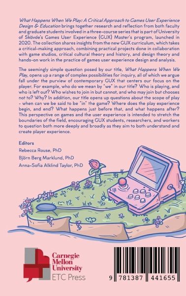 What Happens When We Play: A Critical Approach to Games User Experience Design & Education brings together research and reflection from both faculty and graduate students involved in University of Skövde's Games User Experience (GUX) Master's program, launched in 2020. The collection shares insights from the new GUX curriculum, which takes a critical-making approach, combining practical projects done in collaboration with game studios, critical cultural theory and history, and design theory and hands-on work in the practice of games user experience design and analysis. The seemingly simple question posed by our title, What Happens When We Play, opens up a range of complex possibilities for inquiry, all of which we argue fall under the purview of contemporary GUX that centers our focus on the player. For example, who do we mean by "we" in our title? Who is playing, and who is left out? Who wishes to join in but cannot, and who may join but chooses not to? Why? In addition, our title opens up questions about the scope of play - when can we be said to be "in" the game? Where does the play experience begin, and end? What happens just before that, and what happens after? This perspective on games and the user experience is intended to stretch the boundaries of the field, encouraging GUX students, researchers, and workers to question both more deeply and broadly as they aim to both understand and create player experience.