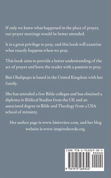 If only we knew what happened in the place of prayer, our prayer meetings would be better attended. This kingdom works by faith. In other words, when we pray, we must see what is happening in the spiritual realm through the eyes of faith. It is a great privilege to pray, and this book will examine what exactly happens when we pray. This book aims to provide a better understanding of the act of prayer and leave the reader with a passion to pray.