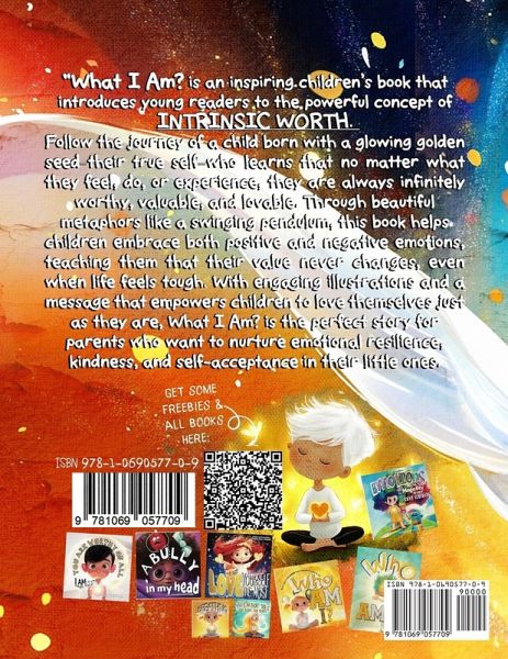 "Who Am I? Worthy, Lovable & Valuable" is a heartwarming and essential guide for parents who want to instill confidence, emotional intelligence, and self-worth in their children. In today's world, many parents struggle with helping their kids navigate overwhelming emotions like fear, anger, and sadness, while also building a strong sense of self-love and self-esteem. This beautifully illustrated book provides a simple yet profound solution: teaching kids that no matter what they feel, think, or do, they are always worthy, lovable, and valuable. Through relatable language and positive affirmations, it helps children:Embrace all emotions-happy, sad, scared, or brave-without fear or judgment. Build unshakeable self-esteem and confidence based on who they are, not what they do. Develop emotional intelligence and compassion, learning to manage emotions in healthy ways. Practice daily positive affirmations that nurture inner strength and kindness. Why Parents Should Read This Book to their kids: Many parents today face the challenge of helping their children manage difficult emotions and cultivate resilience. Whether it's dealing with emotional outbursts, anxiety, or low self-esteem, "Who Am I?" offers a loving approach to help children understand their intrinsic value. This book provides tools to foster emotional growth and create a solid foundation of self-worth that will last a lifetime. Perfect for bedtime reading or as a daily affirmation ritual, "Who Am I? Worthy, Lovable & Valuable" is more than just a story-it's a life lesson in self-love, self-worth, empathy, and emotional wellness. Give your child the gift of knowing they are always enough, just as they are.