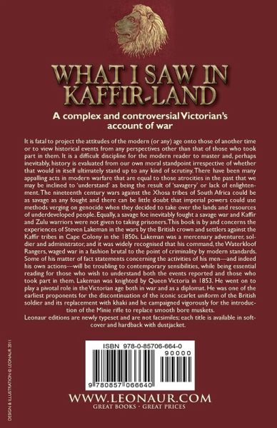 A complex and controversial Victorian's account of war It is fatal to project the attitudes of the modern (or any) age onto those of another time or to view historical events from any perspectives other than that of those who took part in them. It is a difficult discipline for the modern reader to master and, perhaps inevitably, history is evaluated from our own moral standpoint irrespective of whether that would in itself ultimately stand up to any kind of scrutiny. There have been many appalling acts in modern warfare that are equal to those atrocities in the past that we may be inclined to 'understand' as being the result of 'savagery' or lack of enlightenment. The nineteenth century wars against the Xhosa tribes of South Africa could be as savage as any fought and there can be little doubt that imperial powers could use methods verging on genocide when they decided to take over the lands and resources of underdeveloped people. Equally, a savage foe inevitably fought a savage war and Kaffir and Zulu warriors were not given to taking prisoners. This book is by and concerns the experiences of Steven Lakeman in the wars by the British crown and settlers against the Kaffir tribes in Cape Colony in the 1850s. Lakeman was a mercenary adventurer, soldier and administrator, and it was widely recognised that his command, the Waterkloof Rangers, waged war in a fashion brutal to the point of criminality by modern standards. Some of his matter of fact statements concerning the activities of his men-and indeed his own actions-will be troubling to contemporary sensibilities, while being essential reading for those who wish to understand both the events reported and those who took part in them. Lakeman was knighted by Queen Victoria in 1853. He went on to play a pivotal role in the Victorian age both in war and as a diplomat. He was one of the earliest proponents for the discontinuation of the iconic scarlet uniform of the British soldier and its replacement with khaki and he campaigned vigorously for the introduction of the Minie rifle to replace smooth bore muskets. Leonaur editions are newly typeset and are not facsimiles; each title is available in softcover and hardback with dustjacket.