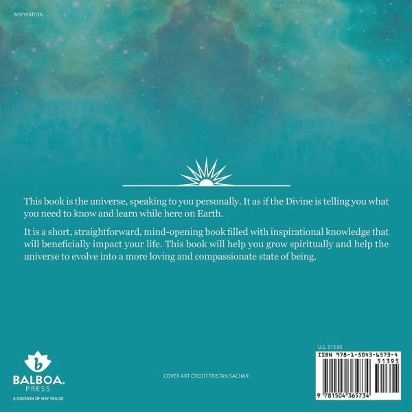 This book is the universe, speaking to you personally. It as if the Divine is telling you what you need to know and learn while here on Earth. It is a short, straightforward, mind-opening book filled with inspirational knowledge that will beneficially impact your life. This book will help you grow spiritually and help the universe to evolve into a more loving and compassionate state of being.